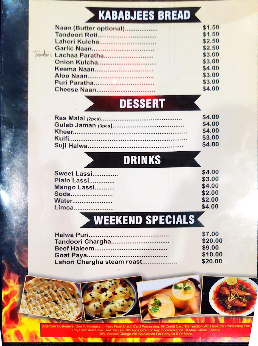 Overall, the menu serves a broad spectrum of Pakistani cuisine, providing a range of vegetarian and non-vegetarian dishes, breads, snacks, desserts, and beverages appropriate for breakfast, lunch, or dinner settings.